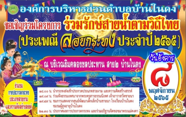 ประชาสัมพันธ์เชิญชวนเที่ยวงานโครงการ ร่วมรักษ์สายน้ำตามวิถีไทย(ประเพณี ลอยกระทงประจำปี 2565)