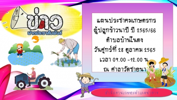 สำนักงานเกษตรอำเภอท่ายาง เชิญเกษตรกรผู้ปลูกข้าวนาปี ปี 2565/66