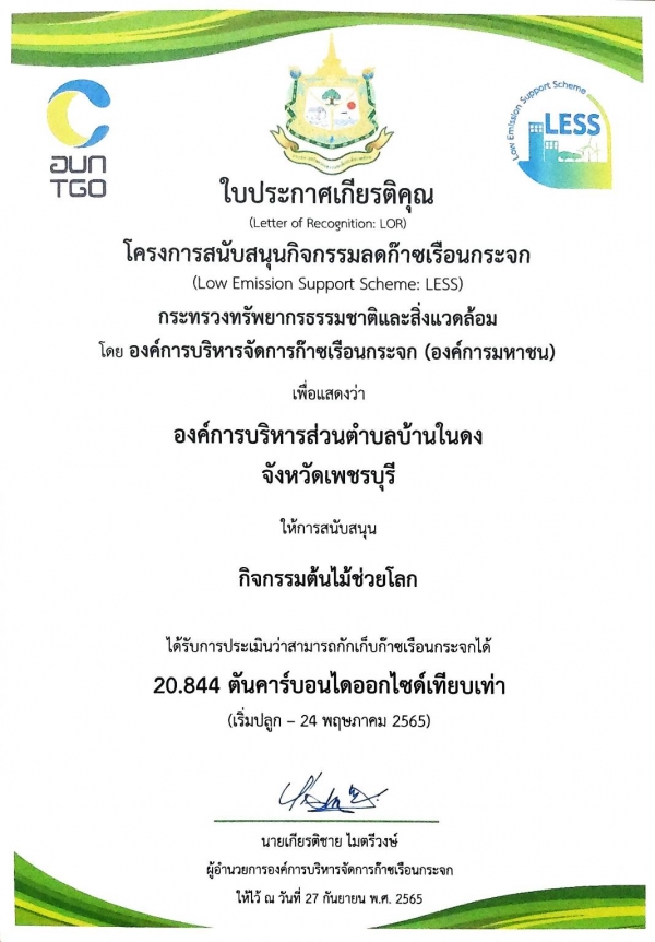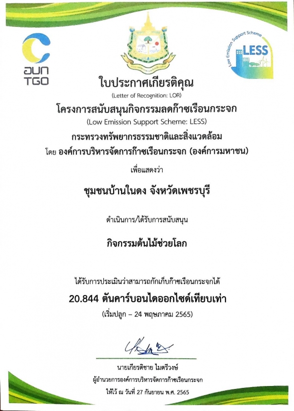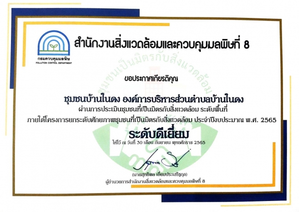 เข้าร่วมการดำเนินโครงการและผ่านการประเมินชุมชนที่เป็นมิตรกับสิ่งแวดล้อมระดับพื้นที่ ในระดับดีเยี่ยม