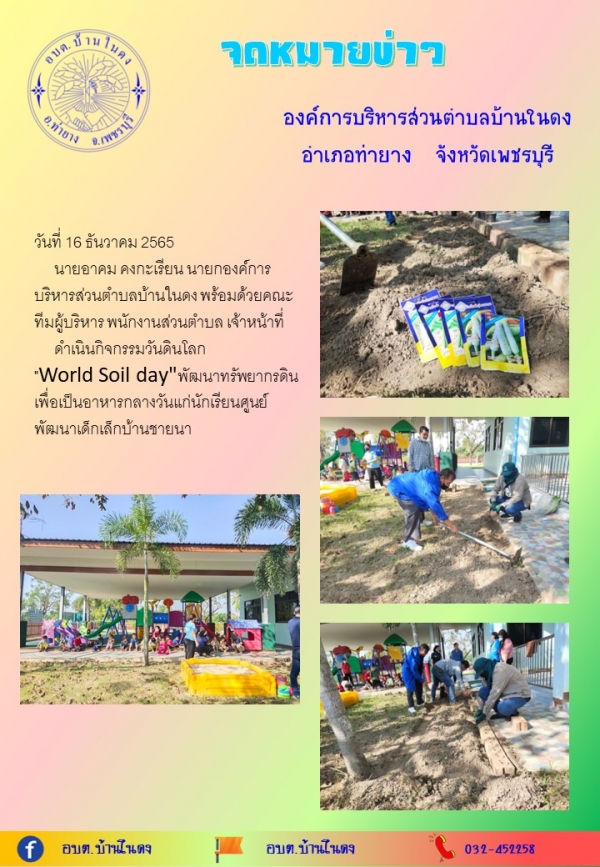 ดำเนินกิจกรรมวันดินโลก "World soil day" พัฒนาทรัพยากรดินเพื่อเป็นอาหารกลางวันแก่นักเรียนศูนย์พัฒนาเด็กเล็กบ้านชายนา