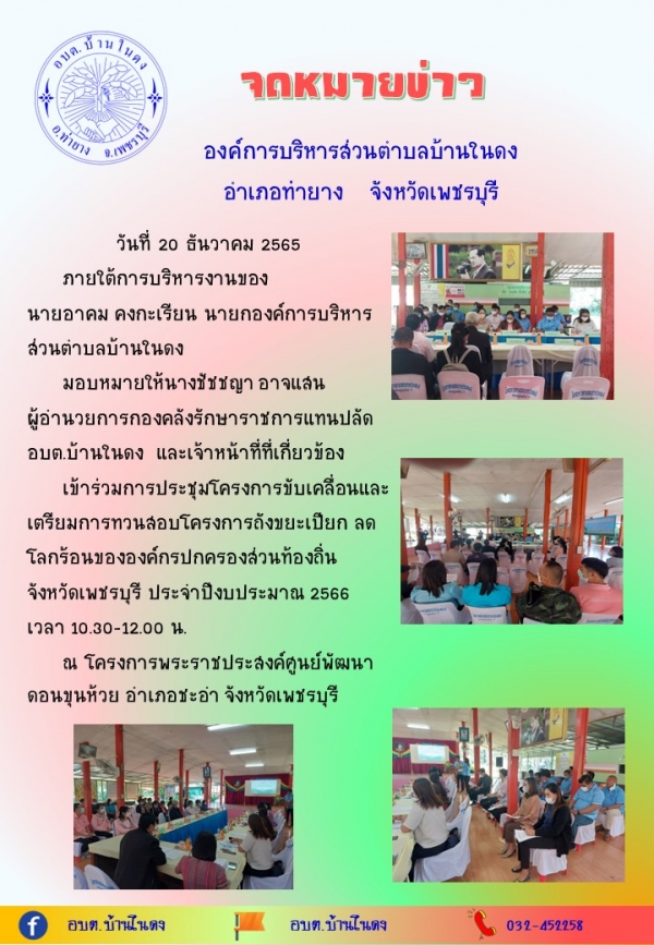 ภายใต้การบริหารงานของ นายอาคม คงกะเรียน นายกองค์การบริหารส่วนตำบลบ้านในดง