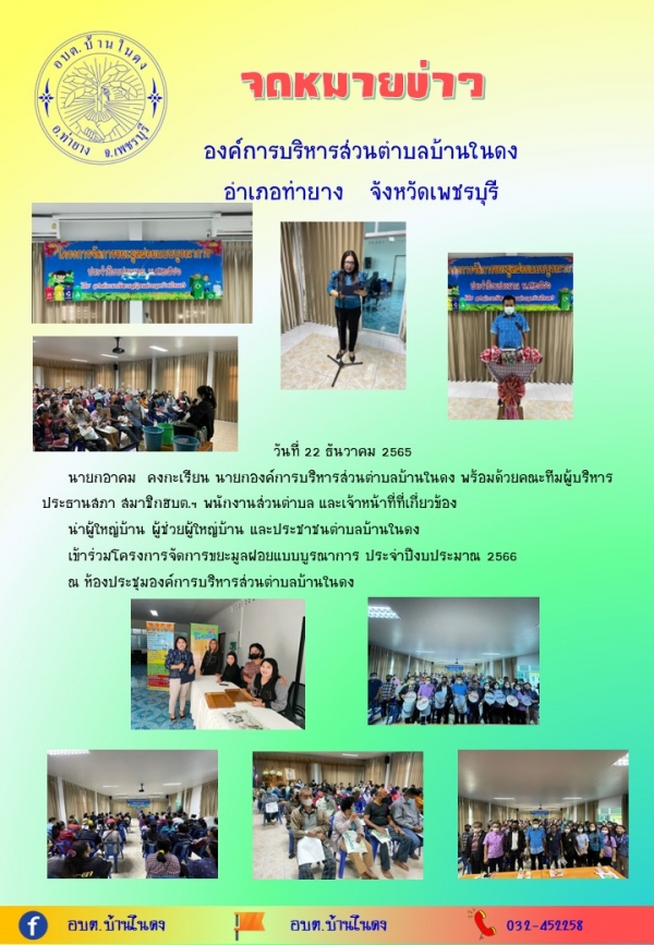 วันที่ 22 ธันวาคม2565เข้าร่วมโครงการจัดการขยะมูลฝอยแบบบูรณาการ ประจำปีงบประมาณ 2566
