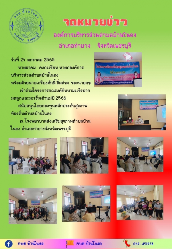 ณ โรงพยาบาลส่งเสริมสุขภาพตำบลบ้านในดง อำเภอท่ายาง จังหวัดเพชรบุรี