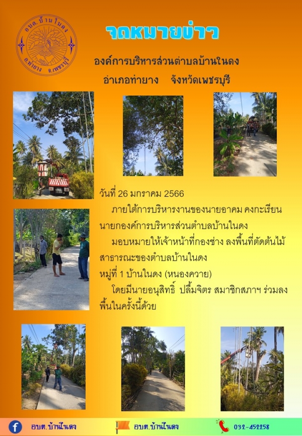 มอบหมายให้เจ้าหน้าที่กองช่าง ลงพื้นที่ตัดต้นไม้สาธารณะของตำบลบ้านในดง