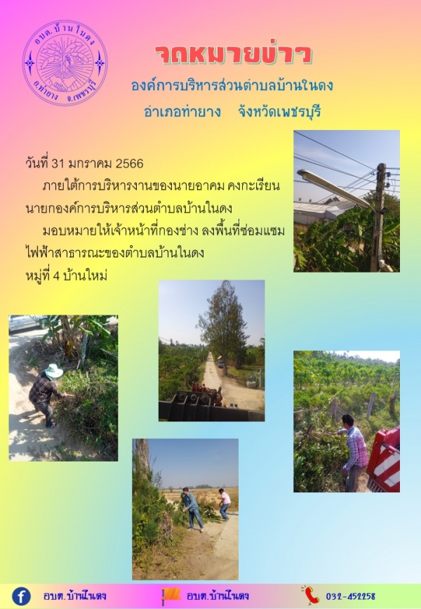 มอบหมายให้เจ้าหน้าที่กองช่าง ลงพื้นที่ซ่อมแซมไฟฟ้าสาธารณะของตำบลบ้านในดง