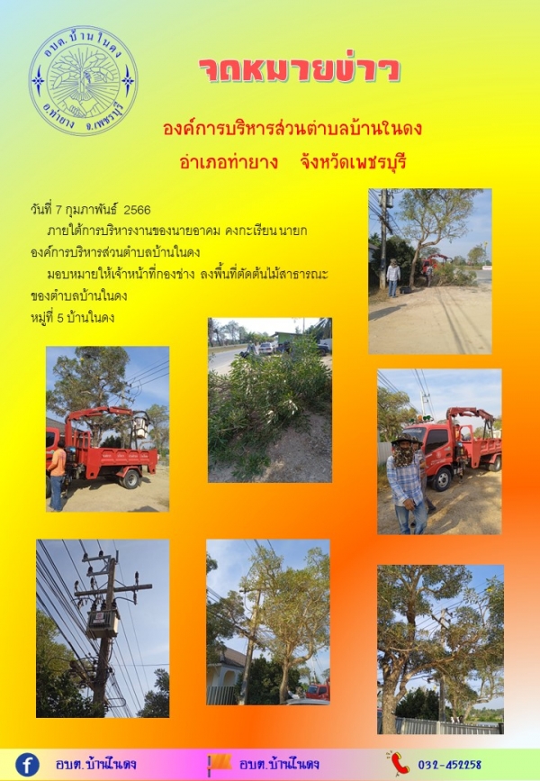วันที่ 7 กุมภาพันธ์ 2566ลงพื้นที่ตัดต้นไม้สาธารณะของตำบลบ้านในดง