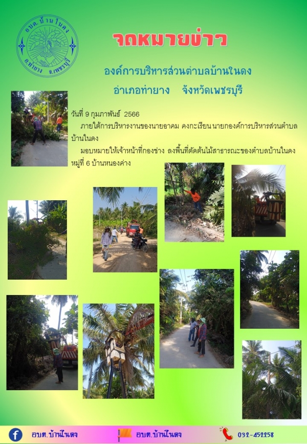 วันที่ 9 กุมภาพันธ์ 2566ลงพื้นที่ตัดต้นไม้สาธารณะของตำบลบ้านในดง