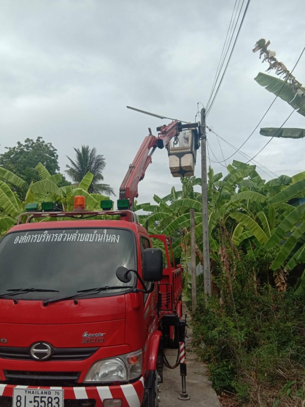 มอบหมายให้เจ้าหน้าที่กองช่าง ลงพื้นที่ตัดต้นไม้ซ่อมแซมไฟฟ้า หมู่ที่ 2 บ้านชายนา และรดน้ำต้นไม้สาธารณะหมู่ที่ 5 บ้านในดง ตำบลบ้านในดง อำเภอท่ายาง จังหวัดเพชรบุรี