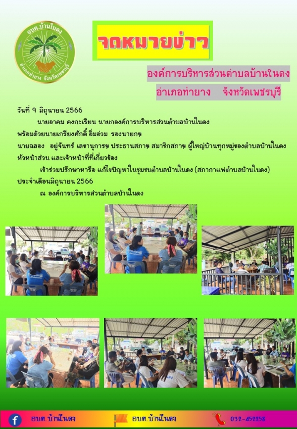 วันที่ 9 มิถุนายน 2566เข้าร่วมปรึกษาหารือ แก้ไขปัญหาในชุมชนตำบลบ้านในดง (สภากาแฟตำบลบ้านในดง)