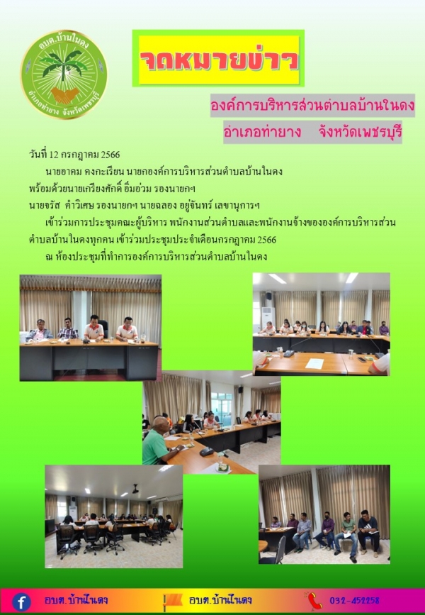เข้าร่วมการประชุมคณะผู้บริหาร พนักงานส่วนตำบลและพนักงานจ้างขององค์การบริหารส่วนตำบลบ้านในดงทุกคน เข้าร่วมประชุมประจำเดือนกรกฎาคม 2566