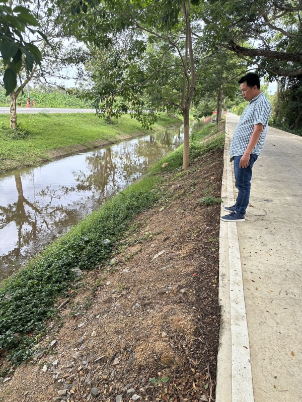 พร้อมด้วยเจ้าหน้าที่ที่เกี่ยวข้อง ลงพื้นที่สำรวจไหล่ทางถนนคสล.หมู่ที่ 6 เพื่อทำบันไดบริเวณริมคลองชลประทานสายสอง คำนึงถึงความปลอดภัยแก่ประชาชน