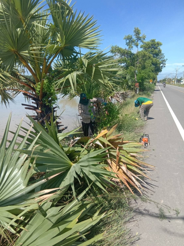 วันจันทร์ที่ 28 สิงหาคม 2566ลงพื้นที่ตัดแต่งต้นตาลเพื่อความสวยงาม