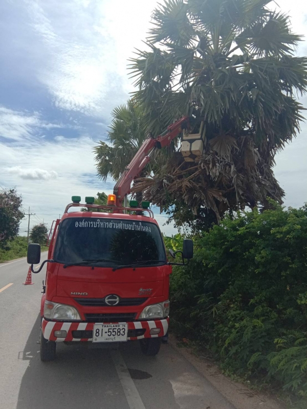 มอบหมายให้เจ้าหน้าที่กองช่าง ลงพื้นที่ตัดแต่งต้นตาลเพื่อความสวยงาม หมู่ที่ 2 บ้านชายนา อำเภอท่ายาง จังหวัดเพชรบุรี