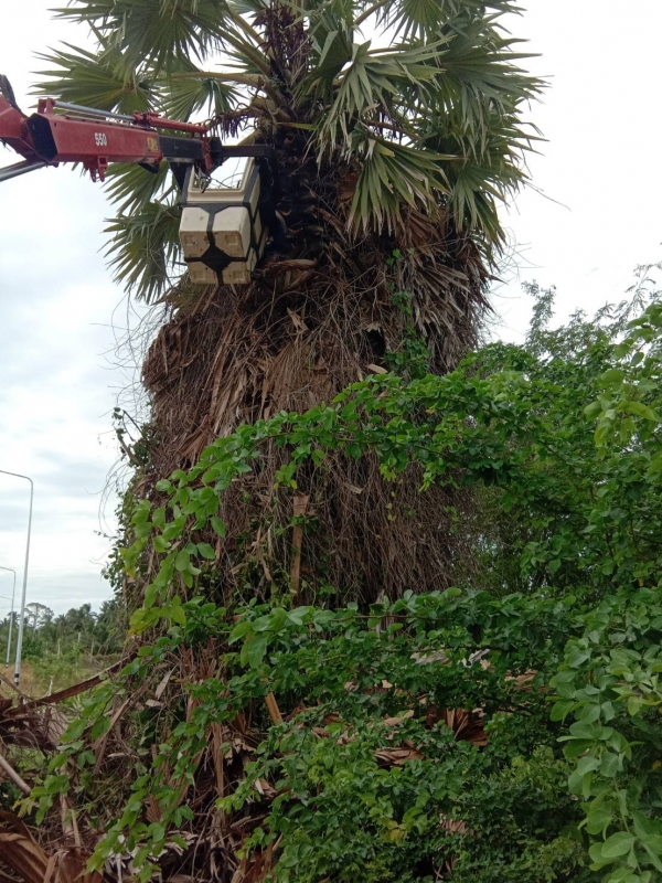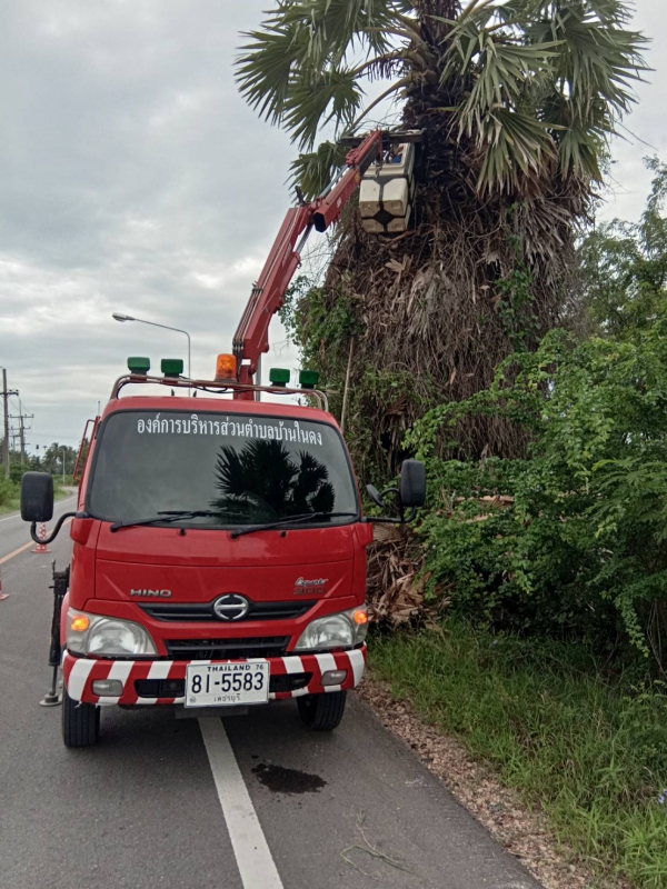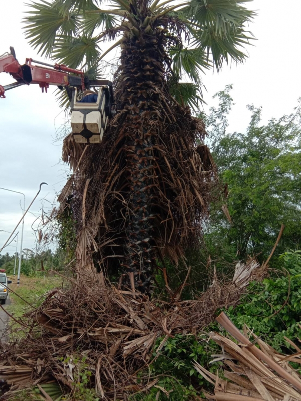มอบหมายให้เจ้าหน้าที่กองช่าง ลงพื้นที่ตัดแต่งต้นตาลเพื่อความสวยงาม หมู่ที่ 4 บ้านใหม่ อำเภอท่ายาง จังหวัดเพชรบุรี