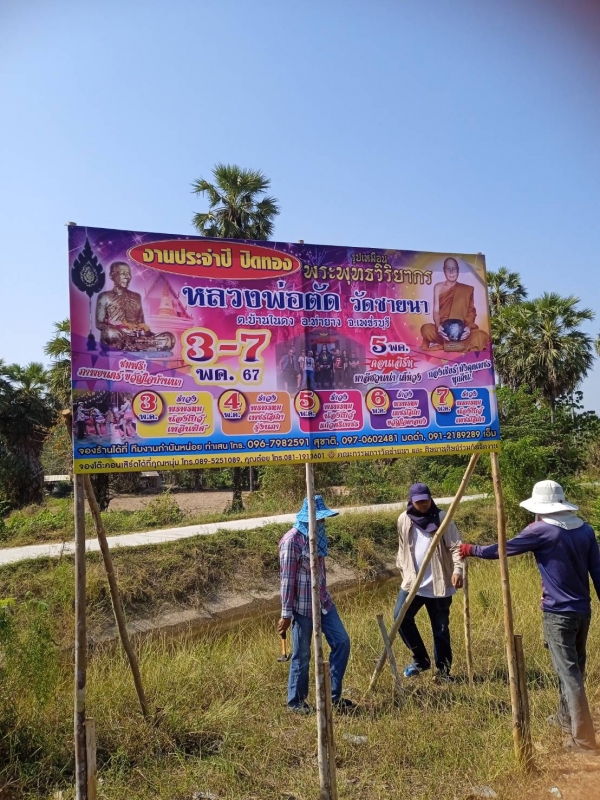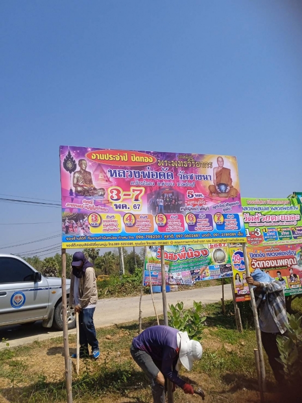 ลงพื้นที่ในการดำเนินการติดป้ายงานปิดทองรูปเหมือน หลวงพ่อตัด 10 ป้าย วัดชายนา ประจำปี 2567