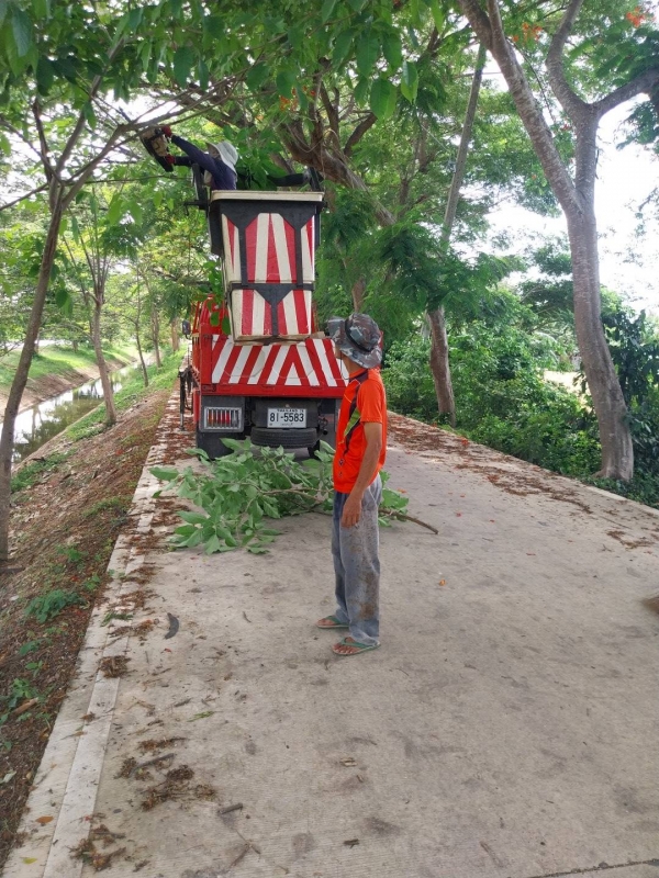 มอบหมายให้สมาชิกสภาอบต.ฯ เจ้าหน้าที่กองช่าง ลงพื้นที่ตัดต้นไม้สาธารณะ ตำบลบ้านในดง อำเภอท่ายาง จังหวัดเพชรบุรี