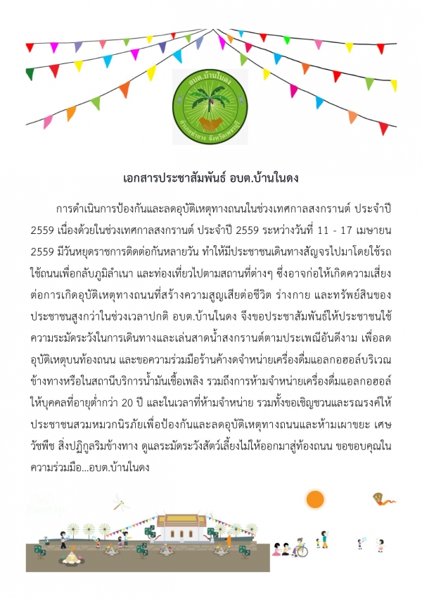 การดำเนินการป้องกันและลดอุบัติเหตุทางถนนในช่วงเทศกาลสงกรานต์ ปี 2559