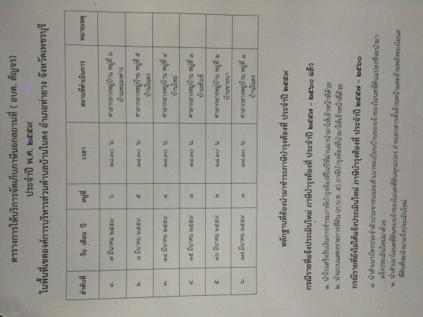 ตารางการให้บริการจัดเก็บภาษีนอกสถานที่ (อบต.สัญจร) ประจำปี พ.ศ.2559