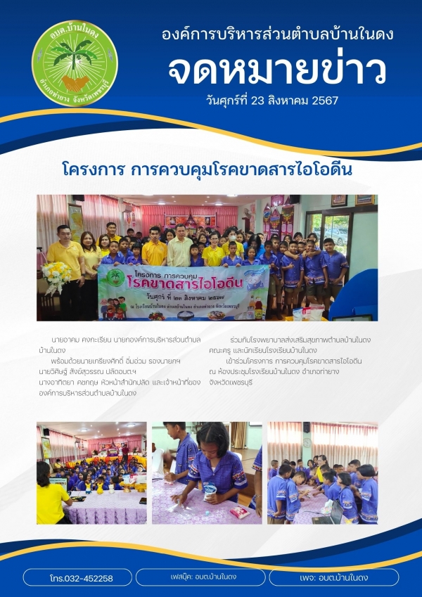 เข้าร่วมโครงการการควบคุมโรคขาดสารไอโอดีน ณ ห้องประชุมโรงเรียนบ้านในดง อำเภอท่ายาง จังหวัดเพชรบุรี