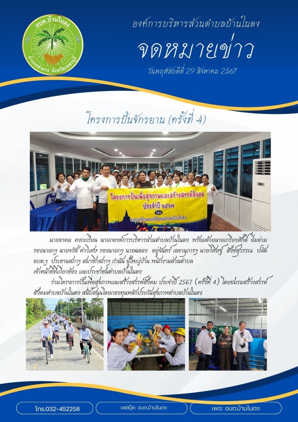 ร่วมโครงการปั่นเพื่อสุขภาพและสร้างสรรค์สังคม ประจำปี 2567 (ครั้งที่ 4) โดยชมรมสร้างสรรค์สังคมตำบลบ้านในดง สนับสนุนโดยกองทุนหลักประกันสุขภาพตำบลบ้านในดง