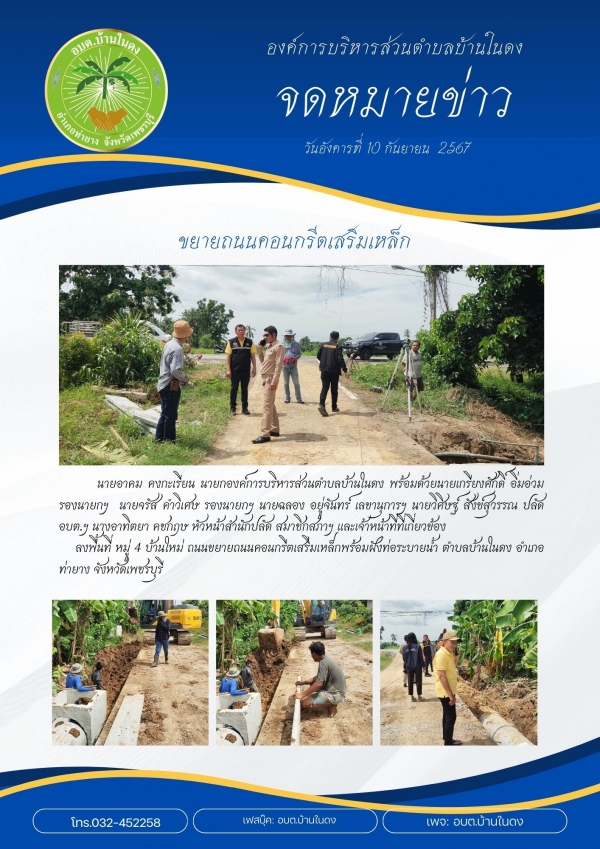 ลงพื้นที่ หมู่ 4 บ้านใหม่ ถนนขยายถนนคอนกรีตเสริมเหล็กพร้อมฝังท่อระบายน้ำ ตำบลบ้านในดง อำเภอท่ายาง จังหวัดเพชรบุรี