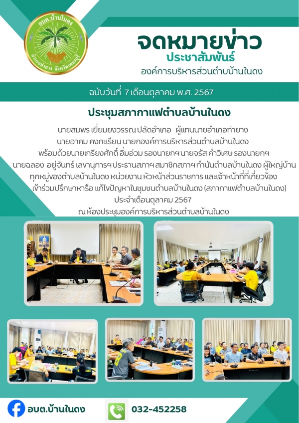 เข้าร่วมปรึกษาหารือ แก้ไขปัญหาในชุมชนตำบลบ้านในดง (สภากาแฟตำบลบ้านในดง) ประจำเดือนตุลาคม 2567