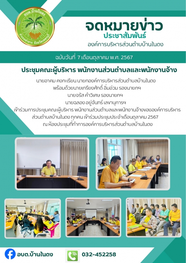 เข้าร่วมการประชุมคณะผู้บริหาร พนักงานส่วนตำบลและพนักงานจ้างขององค์การบริหารส่วนตำบลบ้านในดง ทุกคน เข้าร่วมประชุมประจำเดือนตุลาคม 2567