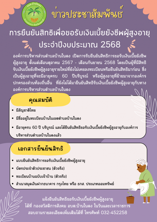 การยืนยันสิทธิเพื่อขอรับเงินเบี้ยยังชีพผู้สูงอายุประจำปีงบประมาณ 2568