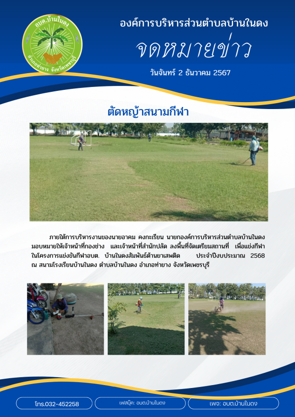 วันจันทร์ที่ 2 ธันวาคม 2567ลงพื้นที่จัดเตรียมสถานที่ เพื่อแข่งกีฬาในโครงการแข่งขันกีฬาอบต. บ้านในดงสัมพันธ์ต้านยาเสพติด