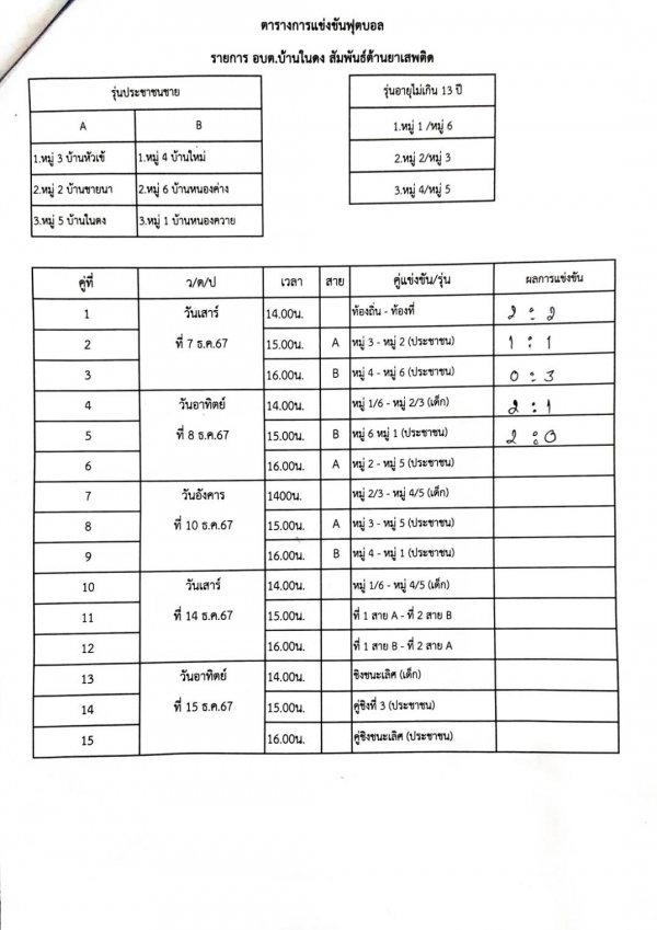ติดตามผลการแข่งขันกีฬา อบต.บ้านในดงสัมพันธ์ต้านยาเสพติด