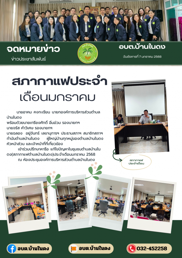 วันอังคารที่ 7 มกราคม 2568(สภากาแฟตำบลบ้านในดง) ประจำเดือนมกราคม 2568