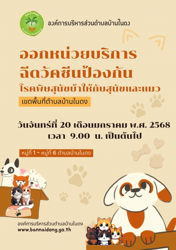 กำหนดการออกหน่วยบริการฉีดวัคซีนป้องกันโรคพิษสุนัขบ้าให้กับสุนัขและแมว