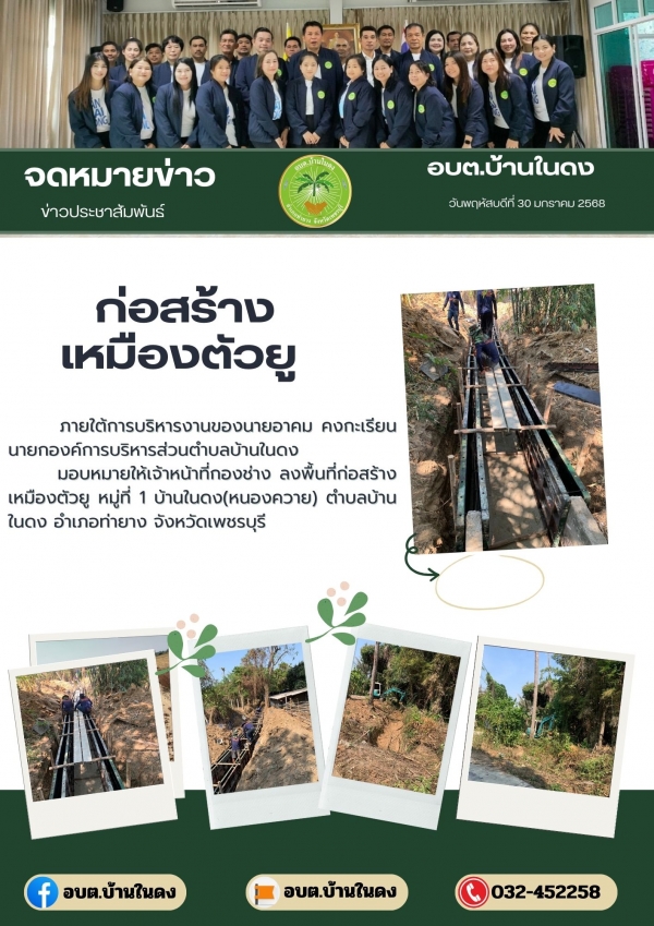 มอบหมายให้เจ้าหน้าที่กองช่าง ลงพื้นที่ก่อสร้างเหมืองตัวยูหมู่ที่ 1 บ้านในดง(หนองควาย) ตำบลบ้านในดง อำเภอท่ายาง จังหวัดเพชรบุรี