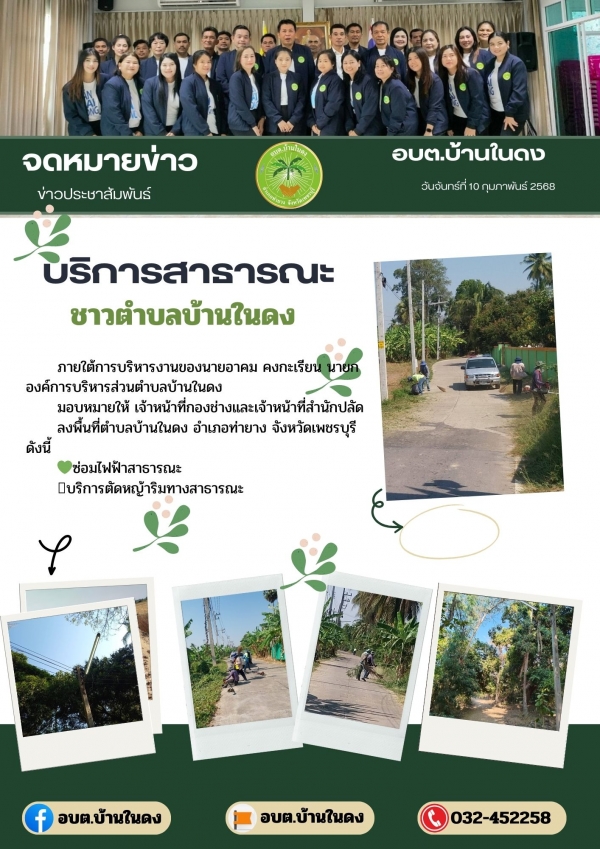 วันจันทร์ที่ 10 กุมภาพันธ์ 2568บริการสาธารณะให้ชาวตำบลบ้านในดง