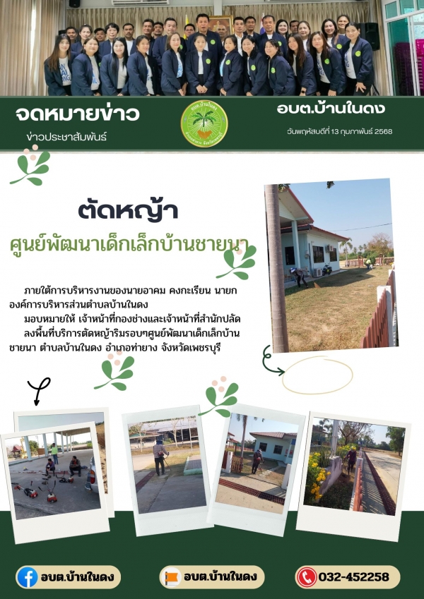 วันพฤหัสบดีที่ 13 กุมภาพันธ์ 2568 ลงพื้นที่บริการตัดหญ้าริมรอบๆ ศูนย์พัฒนาเด็กเล็กบ้านชายนา