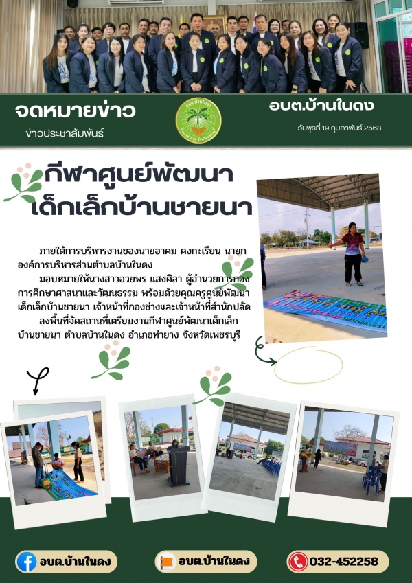 ภายใต้การบริหารงานของนายอาคม คงกะเรียน นายกองค์การบริหารส่วนตำบลบ้านในดง