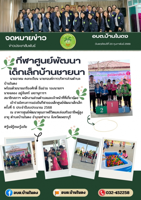 วันพฤหัสบดีที่ 20 กุมภาพันธ์ 2568 เข้าร่วมโครงการแข่งขันกีฬาของเด็กศูนย์พัฒนาเด็กเล็ก ครั้งที่ 6