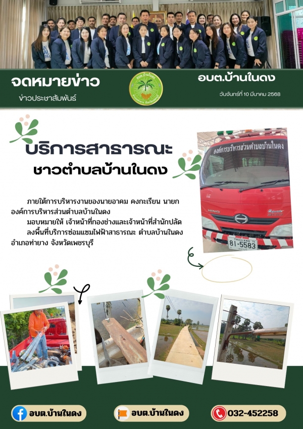 ลงพื้นที่บริการซ่อมแซมไฟฟ้าสาธารณะตำบลบ้านในดง อำเภอท่ายาง จังหวัดเพชรบุรี