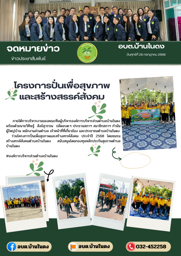 ร่วมโครงการปั่นเพื่อสุขภาพและสร้างสรรค์สังคม ประจำปี 2568 โดยชมรมสร้างสรรค์สังคมตำบลบ้านในดง สนับสนุนโดยกองทุนหลักประกันสุขภาพตำบลบ้านในดง