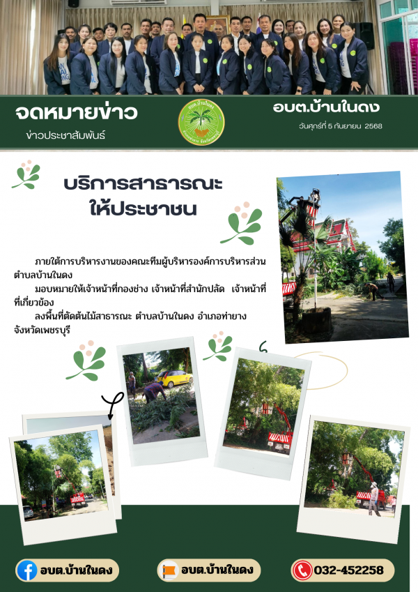 วันศุกร์ที่ 5 กันยายน 2568ลงพื้นที่ตัดต้นไม้สาธารณะ