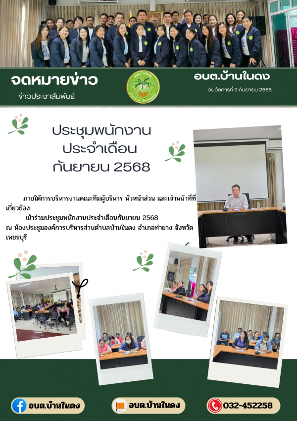 วันอังคารที่ 9 กันยายน 2568เข้าร่วมประชุมพนักงานประจำเดือนกันยายน 2568