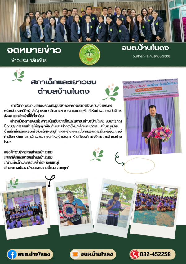 ดำเนินการโดย สภาเด็กและเยาวชนตำบลบ้านในดง ร่วมกับองค์การบริหารส่วนตำบลบ้านในดง
