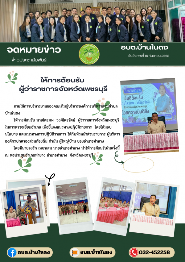 วันอังคารที่ 16 กันยายน 2568ให้การต้อนรับ นายไตรภพ วงศ์ไตรรัตน์ ผู้ว่าราชการจังหวัด