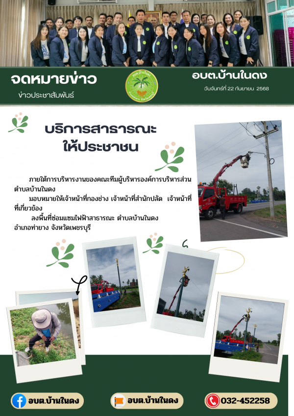 ลงพื้นที่ซ่อมแซมไฟฟ้าสาธารณะ ตำบลบ้านในดง อำเภอท่ายาง จังหวัดเพชรบุรี