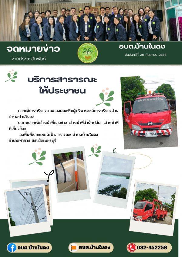 วันศุกร์ที่ 26 กันยายน 2568ลงพื้นที่ซ่อมแซมไฟฟ้าสาธารณะ