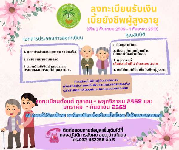 วันพุธที่ 6 ตุลาคม 2568 ลงทะเบียนรับเงินเบี้ยยังชีพผู้สูงอายุ