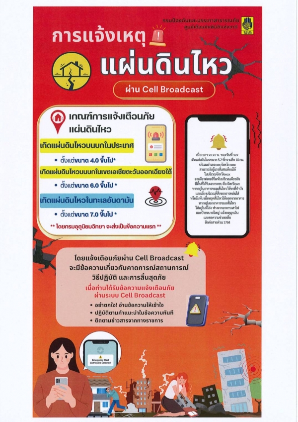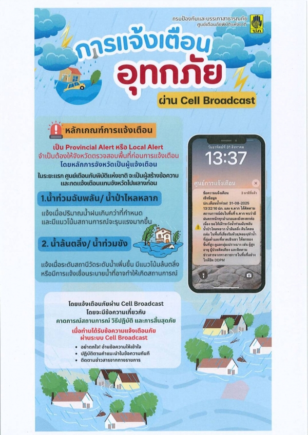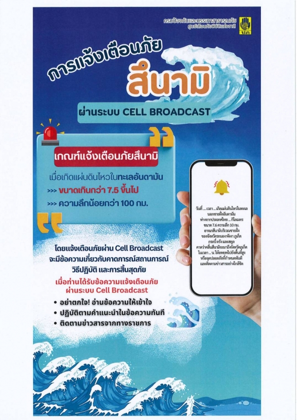 การประชาสัมพันธ์และสร้างการรับรู้การใช้งานระบบแจ้งเดือนภัยผ่านสัญญาณโทรศัพท์ (Cell Broadcast)
