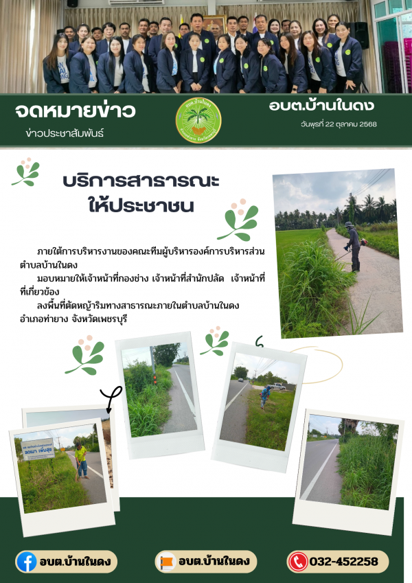 ลงพื้นที่ตัดหญ้าริมทางสาธารณะภายในตำบลบ้านในดง อำเภอท่ายาง จังหวัดเพชรบุรี