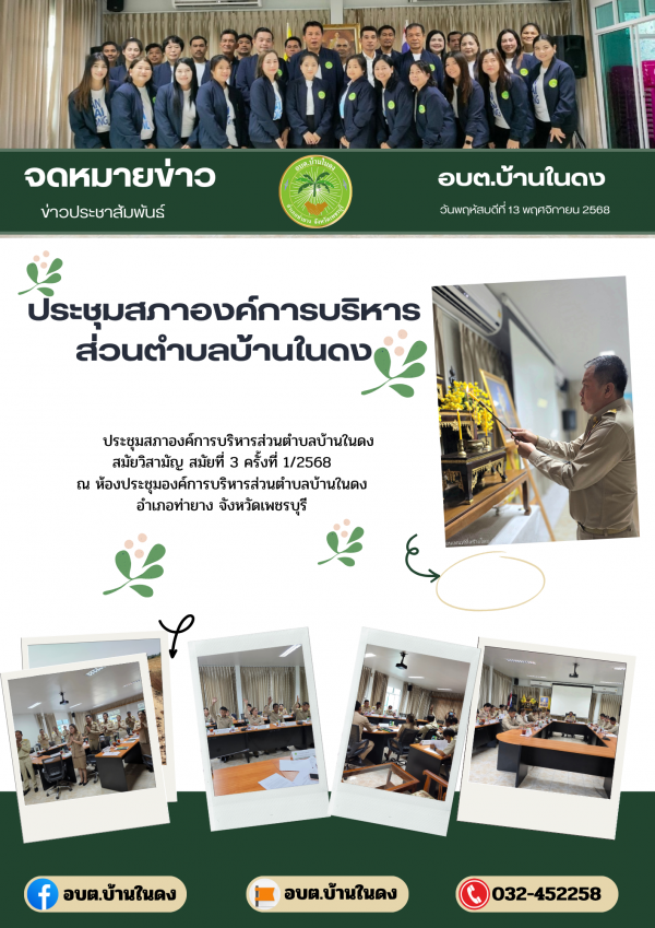 ประชุมสภาองค์การบริหารส่วนตำบลบ้านในดง วันพฤหัสบดีที่ 13 พฤศจิกายน 2568 สมัยวิสามัญ สมัยที่ 3 ครั้งที่ 1/2568