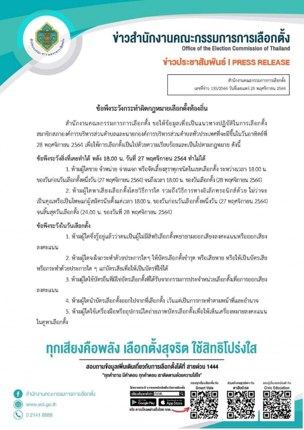 ข้อพึงระวังกระทำผิดกฎหมายเลือกตั้งท้องถิ่น